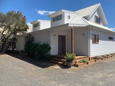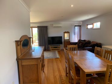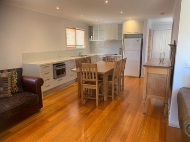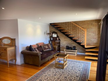 Downstairs has open plan living two lounges which open out through timber sliding doors onto a large deck.